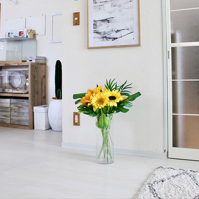 シンプルな部屋でもひまわりがあるだけで明るい印象になります。