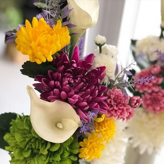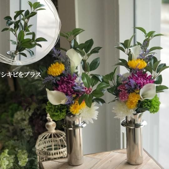 お手入れ簡単、水替え不要なアーティフィシャルフラワー(造花)の墓花