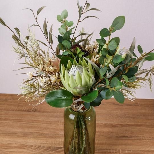 アレンジメントで使用している花材、葉材に関して、在庫状況により若干変更になる場合もございます。