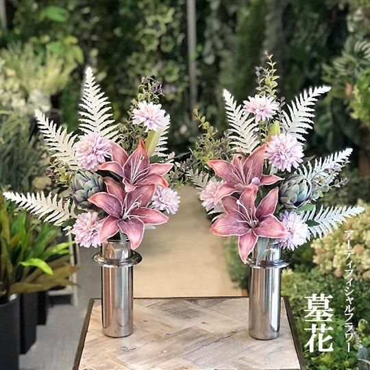 お手入れ簡単、水替え不要なアーティフィシャルフラワー(造花)の墓花